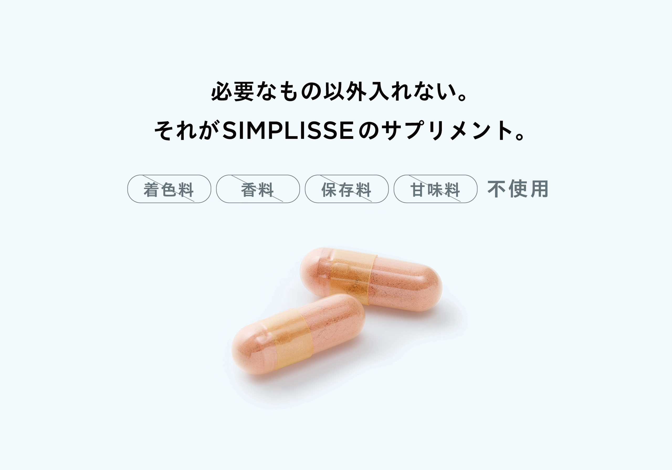 HOME ULTRA-V PRO くすんだトーンが気になっていたのに、 飲み始めて半年、鏡を見るのが楽しみになりました。 ファンデーションも1トーン明るいものに変えました! 今年の夏はいつものように悩まず過ごせそうです。 これからも飲み続けたいと思います! 子どもとの外出中、日焼け止めの塗り直しができなくて 今は仕方ないか…と思っていた時に出会ったサプリ! 飲むだけならできる!と即購入しました。 2粒の手軽さ、品質の安全性も含め、お気に入りです。 年々、自力で回復することの難しさを感じて、 始めたサプリメントが、とても合っていたみたいです。 体は食べたもので作られるって本当だなと実感しています。 天然のレチノールが入っているのも決め手でした。 つやっとみずみずしくいたいから、続けます! Q.日差しの強い日や外出する日に飲むのが良いですか。 A.曇りや雨の日も、雲や窓ガラスを通り抜けて日差しが届いていますので、毎日継続してお飲みいただくことをおすすめいたします。 また、若々しい透明感は日々の栄養からつくられますので、季節や天候にかかわらず一年中の対策としてお役立てください。 Q.いつ飲むのが良いですか。 A. 1日1袋(2粒)を目安に、水又はぬるま湯などと一緒にお召し上がりください。 毎日お飲み忘れなく続けていただくために、毎朝など決まった時間にお飲みになることをおすすめいたします。 Q.年齢制限はありますか。子どもでも飲めますか。 A. 年齢や性別に制限はございません。カプセルの形状となりますので喉に詰まる恐れがある年齢のお子さまにはおすすめしておりません。 Q.一日何粒まで飲んで良いですか。 A. 一日1袋(2粒)が目安になりますが、ご体調や生活リズムに合わせてお飲みください。ご実感いただくために、一度に多くお飲みいただくよりも、毎日欠かさずご飲用いただくことをおすすめいたします。 Q.病院の薬を飲んでいますが併用は大丈夫ですか。 A. 通院中の方および糖尿病の方は、かかりつけの医師、薬剤師にご相談の上お召し上がりください。 Q.妊娠中や授乳中でも飲めますか。 A. 妊娠中は控えた方がよいとされているローズマリーエキスを配合しておりますので、本品の摂取をお控えください。 授乳中の方は特段問題ございませんが、ご体調もデリケートな時期ですので、かかりつけの医師または薬剤師にご相談の上お召し上がりください。 Q.他のサプリメントと併用しても良いですか。 A. SIMPLISSEのサプリメントとの併用は問題ありません。また、本品は食品ですので他社のサプリメントとの併用も基本的には問題ありませんが、同じ成分を過剰に摂取すると体の負担となる場合がありますので、成分をご確認の上お召し上がりください。 Q.商品は安全ですか。 A. 国内のGMP認証取得工場※で高品質の原材料、高い安全性にこだわって製造しています。また、着色料・香料・保存料・甘味料など一切無添加です。 ※GMPとは…Good Manufaturing Practiceの略称。品質の良い優れた製品を製造するために、原材料の受入ー製造ー試験ー出荷にいたるまでの遵守事項を定めたもの。 HOME ULTRA-V PRO